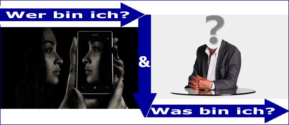Eines kann ich dir gleich sagen, du bist nicht Hans oder Susi, dies sind nur Namen, du bist nicht Frau oder Mann, dies entspricht einer Geschlechtsangabe, du bist nicht Mutter, Vater, Tochter oder Sohn, dies gibt lediglich Auskunft über deinen Stand in deiner Familie, du bist auch nicht verheiratet, verlobt oder Single, dies ist nur dein Familienstand, du bist nicht ChristIn, Muslime, JüdIn, BuddhistIn, dies ist deine Religionszugehörigkeit, du bist nicht Deutsche oder Deutscher, ÖsterreicherIn oder SchweizerIn, dies ist deine Staatszugehörigkeit, du bist nicht groß oder klein, beleibt oder schlank, schön oder weniger gut aussehend, das wäre eine Beschreibung deiner Statur und deines Körpers, du bist nicht arm oder reich, dies sind Statusangaben, du bist auch nicht ÄrztIn, IngenieurIn, BuchhalterIn, FacharbeiterIn oder selbständige/r UnternehmerIn, dies sind lediglich Berufsbezeichnungen und du bist auch nicht WeltmeisterIn in irgendeiner Disziplin, dies gibt lediglich Auskunft darüber, dass du ein- oder mehrmals etwas Besonderes geleistet hast.